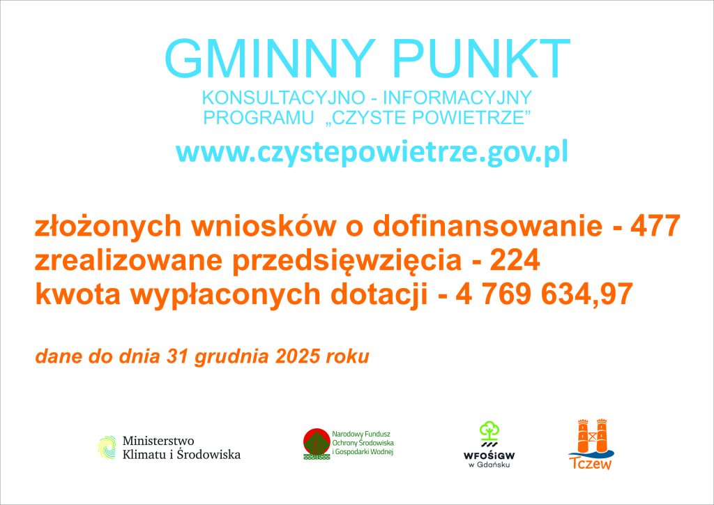UWAGA – NAJWYŻSZY POZIOM DOFINANSOWANIA SKŁADANY TYLKO PRZEZ OPERATORA – GMINA MIEJSKA TCZEW NIE JEST OPERATOREM – taki wniosek można złożyć za pośrednictwem WFOŚiGW w Gdańsku.