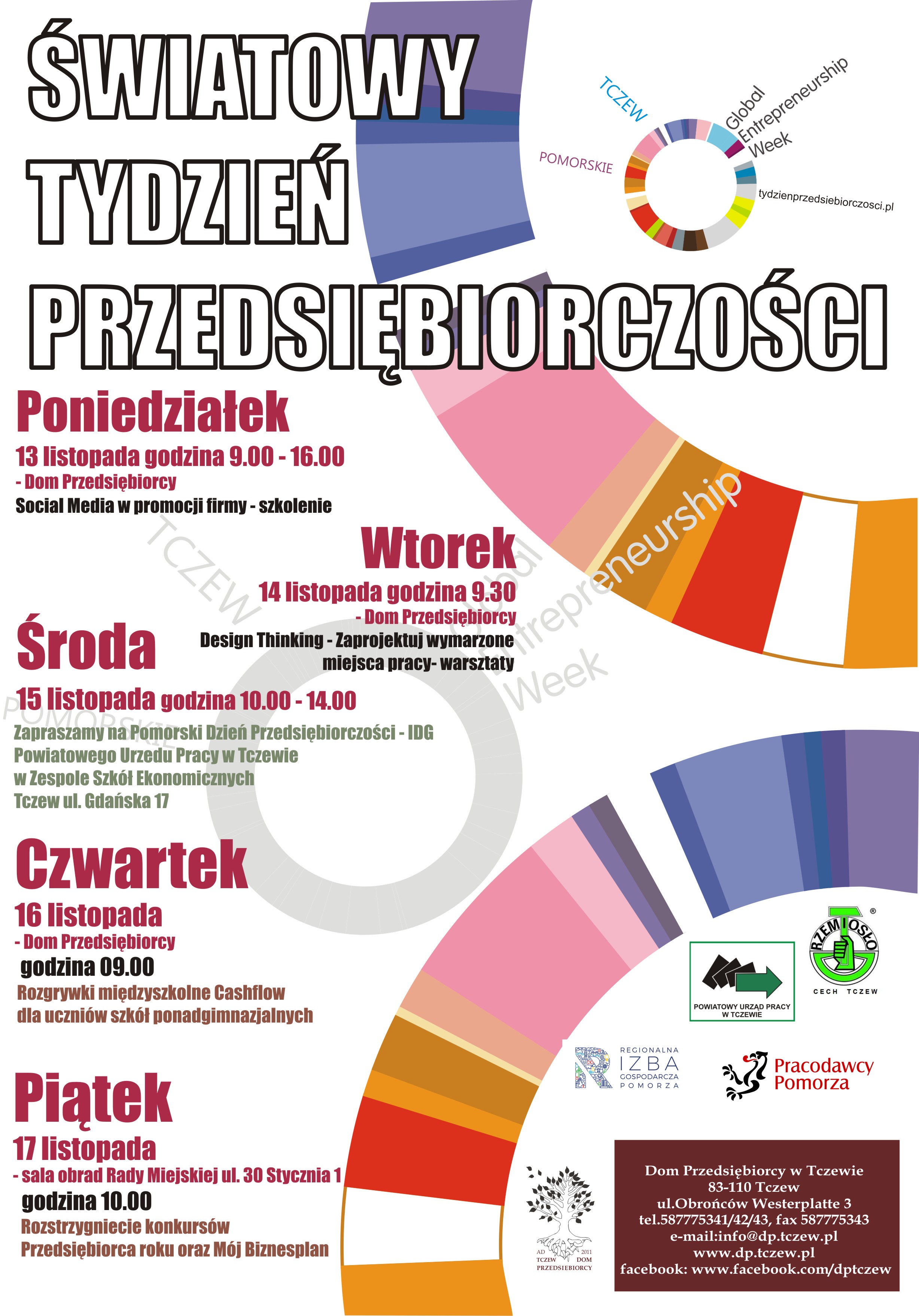 Powiatowy Urząd Pracy w Tczewie w ramach partnerstwa lokalnego z Wojewódzkim Urzędem Pracy w Gdańsku organizuje w dniu 15 listopada 2017 r. w Zespole Szkół Ekonomicznych w Tczewie przy ul. Gdańskiej 17, w godzinach od 10:00 do 14:00 „Pomorski Dzień Przedsiębiorczości – IDG”.